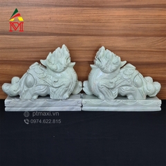 Cặp Tỳ Hưu Đứng Đá Trắng Xanh Có Đế