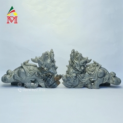 Cặp Tỳ Hưu Đứng Đá Serpentine Xám Đen