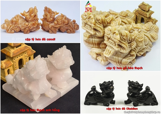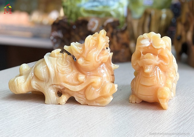 - Tỳ hưu màu vàng phát tài, phát lộc cho việc kinh doanh, buôn bán trôi chảy. (Ngọc hoàng long, Đá Canxit,