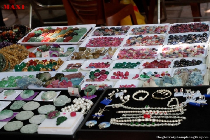 Bên cạnh các dòng đá cao cấp, nhiều loại đá quý được chế tác thành các mặt nhẫn, dây chuyền… Được rao bán ở chợ với giá khá rẻ. Chỉ từ vài chục nghìn đồng cho đến dưới 1 triệu đồng. Đây cũng là một nét đặc biệt khu phiên chợ. Khi người tham dự, mặc dù chưa có kinh nghiệm về đá quý cũng dễ dàng lựa chọn. Mang về mình một số mặt hàng phong thủy giá vừa tầm dưới sự tư vấn của người bán.