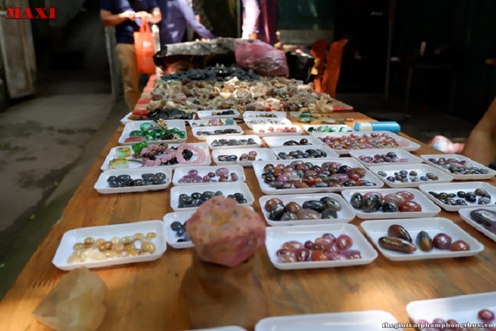 Các sản phẩm đá quý tại phiên chợ đều rất đa dạng. Từ những viên nho nhỏ có giá chỉ vài chục nghìn đồng đến đá quý cả trăm triệu tùy theo kích thước và độ hiếm của đá.