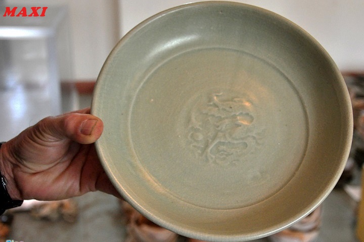 Dĩa men ngọc 700 tuổi do ngư dân lặn vớt ở vùng biển Bình Châu.
