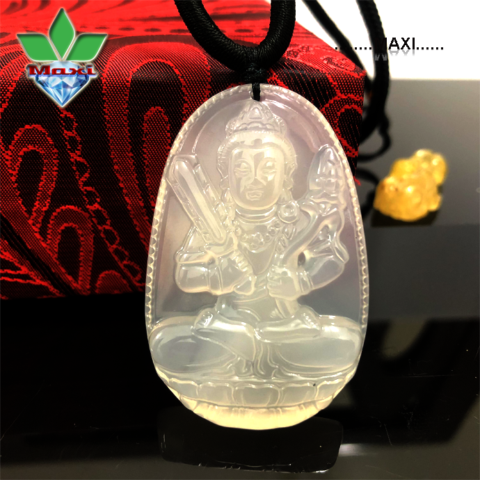 Mặt Phật Bản Mệnh Hư Không Tạng Bồ Tát Mã Não Trắng
