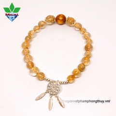 Vòng Tay Thạch Anh Vàng Mix Bi Kim Tiền, Lá Treo Bạc 925
