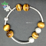 Vòng Tay Thạch Anh Mắt Hổ Nâu Vàng Charm Bi Kim Tiền, Cỏ Bốn Lá Bạc 925
