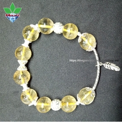 Vòng Tay Thạch Anh Vàng Mix Bi Kim Tiền, Lá Treo Bạc 925