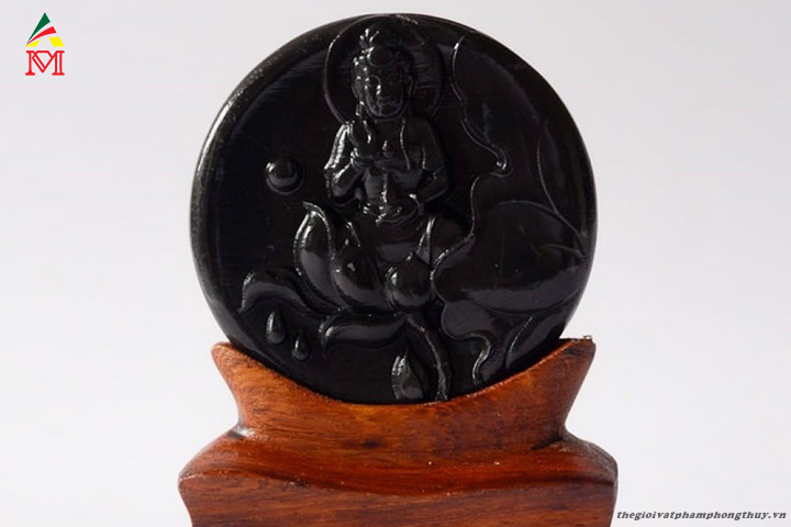 Tượng phật quan âm đá phong thủy đen.