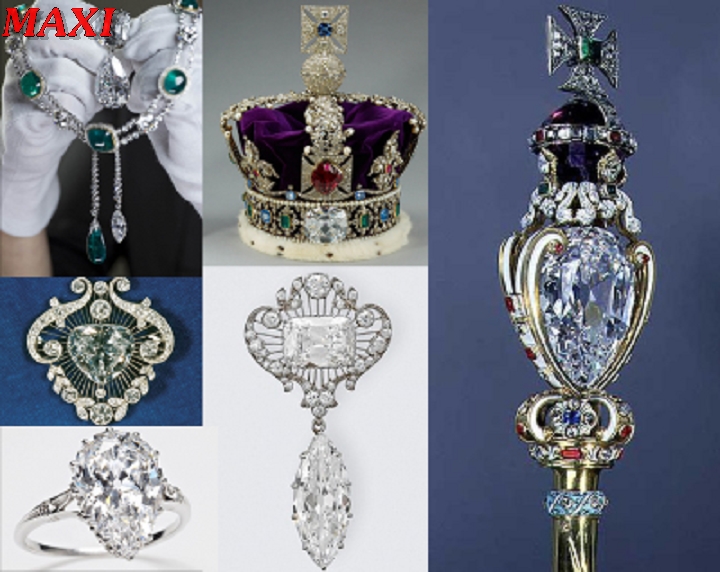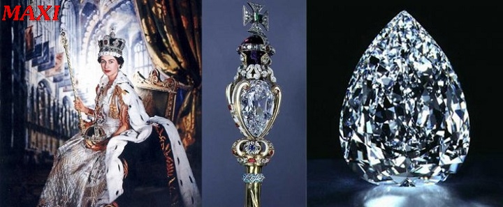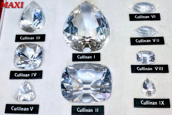 Viên kim cương lớn nhất mang tên Cullinan I được chế tác có hình trái lê với 78 mặt, nặng 530,2 carat, nó được đặt ở nơi cao nhất trên cây quyền trượng Hoàng gia.