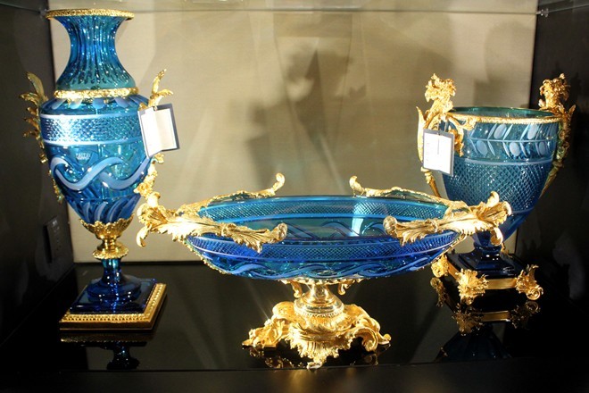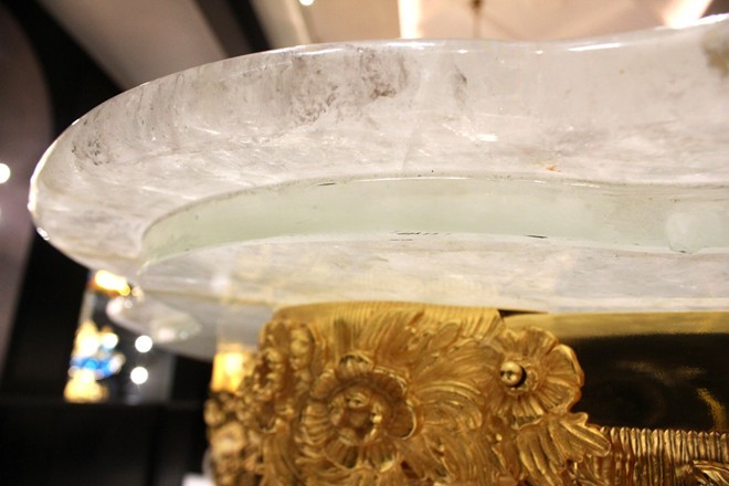 Ngoài 2 chiếc bàn nói trên, cửa hàng cũng chào bán nhiều đồ nội thất pha lê có giá trị cao. Trong ảnh là chiếc cúp pha lê khảm vàng có giá 310 triệu đồng.