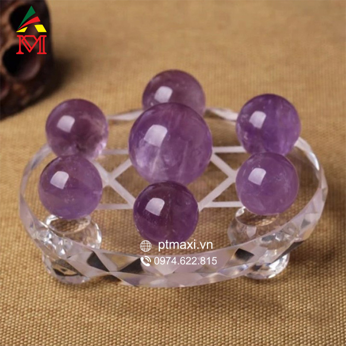 Thất tinh trận đá Thạch Anh Tím là 1 bộ  sản phẩm gồm 7 quả cầu đá  được bố trí trên mặt đĩa tròn.
