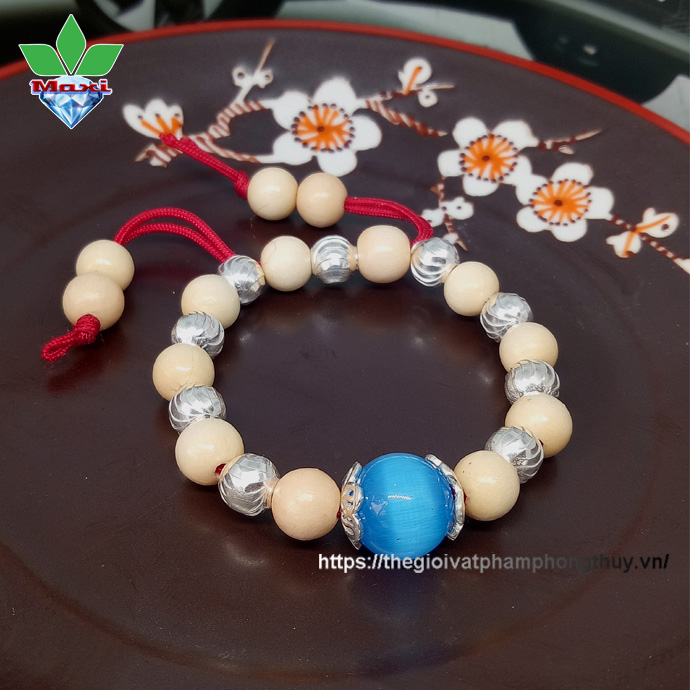 Thông tin Vòng Gỗ Dâu cho Bé Mix Bạc - Đá tự nhiên 9BS2