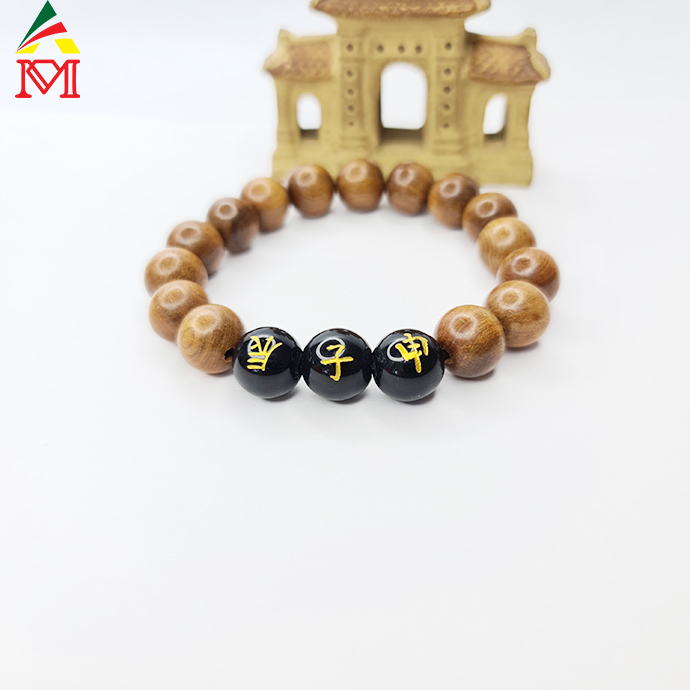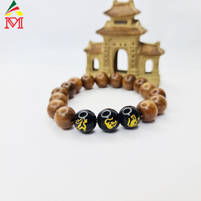 Vòng Tay Tam Hợp Thân - Tý - Thìn Mã Não Đen Đan Gỗ Bách Xanh Tự Nhiên