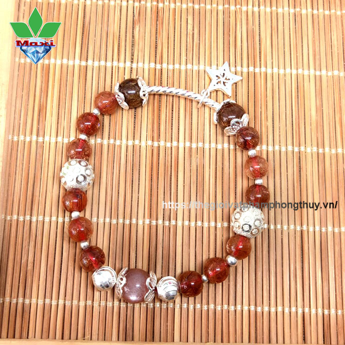 Ý Nghĩa Vòng Tay Thạch Anh Tóc Đỏ 6A Charm Bi Kim Tiền, Ngôi Sao May Mắn Bạc 925 S1